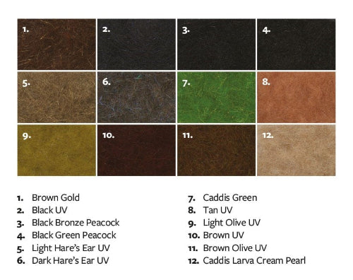 Add a bit of "pop" to your nymph patterns. A blend of Euro Nymph Body dub but with highlights of Tactical Microflash running through it for extra added attraction
