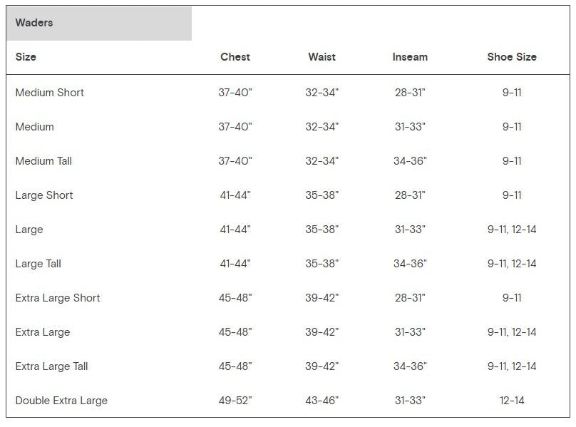 | Size | Chest | Waist | Inseam | Shoe Size |