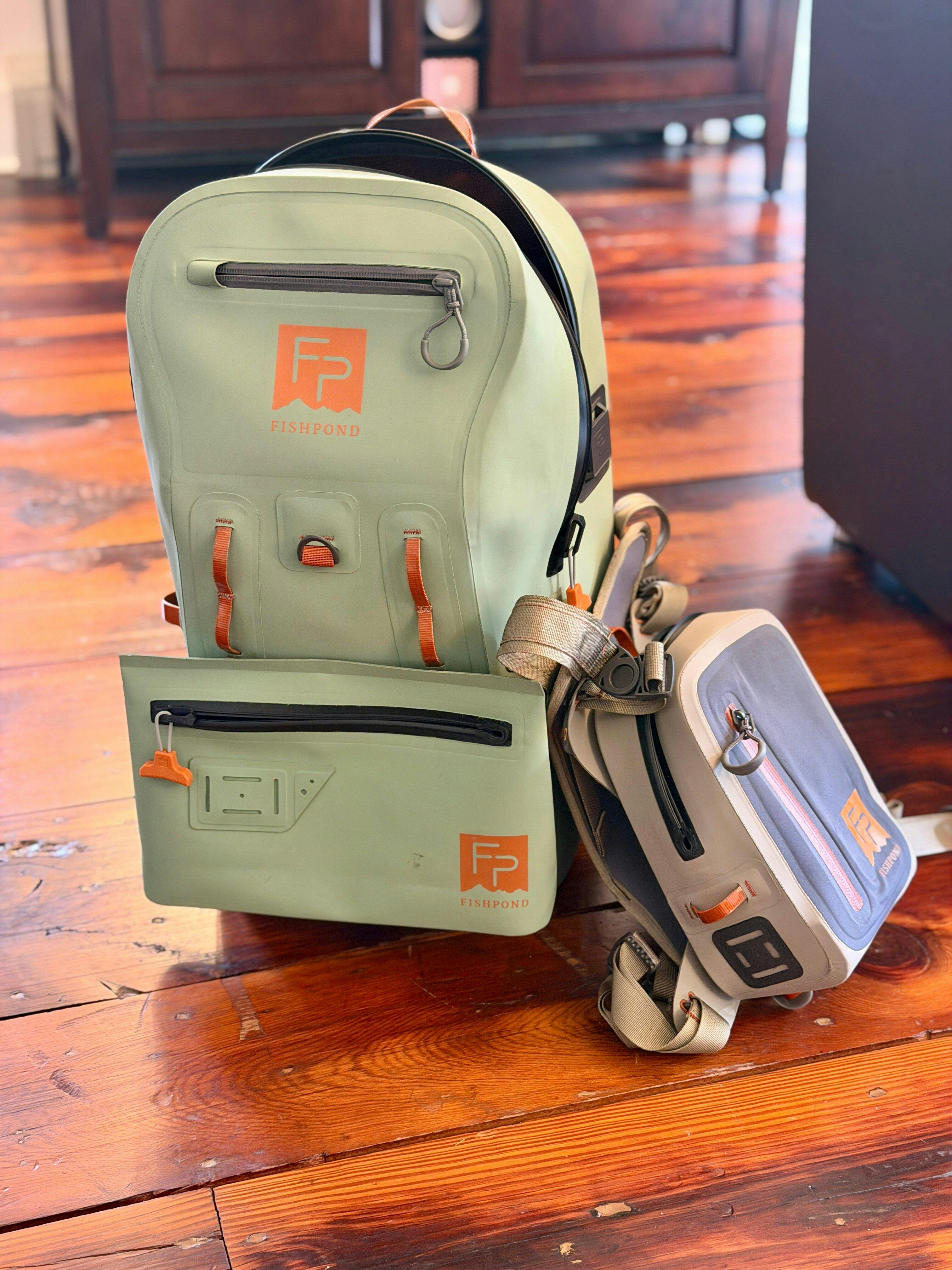 Keep your most important gear completely protected from the elements. One of Fishponds toughest bags ever, constructed with bombproof 1000D TPU coated recycled NewStream Nylon, a fully waterproof self-healing TRU ZIP closure, and a sturdy harness system for a more comfortable carry. Water resistant zipper closure on the front quick-grab pocket. Lightweight foam shoulder strap, hip belt, and molded back panel. Adjustable and moveable lumbar support strap. Removable interior zippered pouch. Coated daisy chain, D-ring and 4-way attachments on back compatible with Fishponds Thunderhead Chest Pack or Pouch, Canyon Creek Chest Pack, San Juan Chest Pack, Sagebrush Pro Mesh Vest front panel and Crosscurrent Chest Pack. Fishpond Lariat Gear Straps (one set included) can be positioned on right or left side for rod tube carry. This pack is sure to keep your cameras, lunch and tackle dry so you can explore with confidence. 21'' x 12'' x 9'', 28L(1648 cu. In.), 2.8-lbs.
