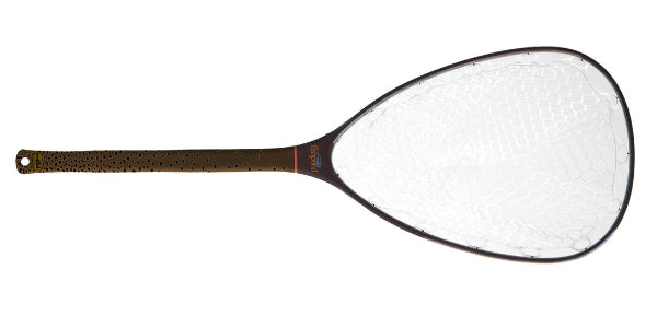 Made with a mixture of carbon fibers and fiberglass making them extremely lightweight and durable. Waterproof, UV protected, and float like a cork. The lightweight, CLEAR RUBBER NET BAGS disappear in the water and will not spook fish. The rubber net bag gently cradles the fish causing less harm than a nylon bag. As an added advantage, HOOKS DO NOT STICK in the rubber netting! Olive RiverKoat finish (rubberized paint for the greatest grip, even when wet), olive carbon weave.