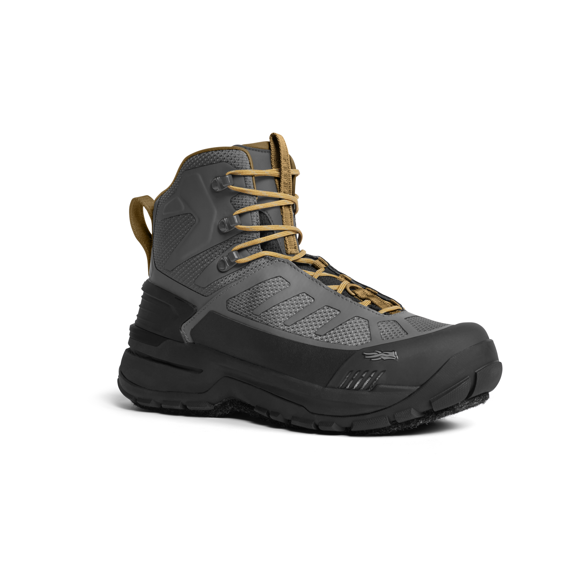 Designed to feel light on the hike in, sure-footed in moving water, and durable season after season, the CrossCurrent Wading Boot is built for anglers who demand precision, not excess. Every element is engineered to maximize comfort, durability, and traction—without adding unnecessary weight. A supportive midfoot fit system and molded ankle structure lock in stability, while the cushioned EVA midsole absorbs impact and reduces fatigue for long days on the water. Underfoot, a customizable aluminum cleat system allows you to dial in traction. TPU overlays at the toe and heel to protect against abrasion and hard strikes, and hydrophobic materials shed water quickly to reduce weight and speed dry times. The result is a secure and comfortable ride during long approaches and extended days in the current.
