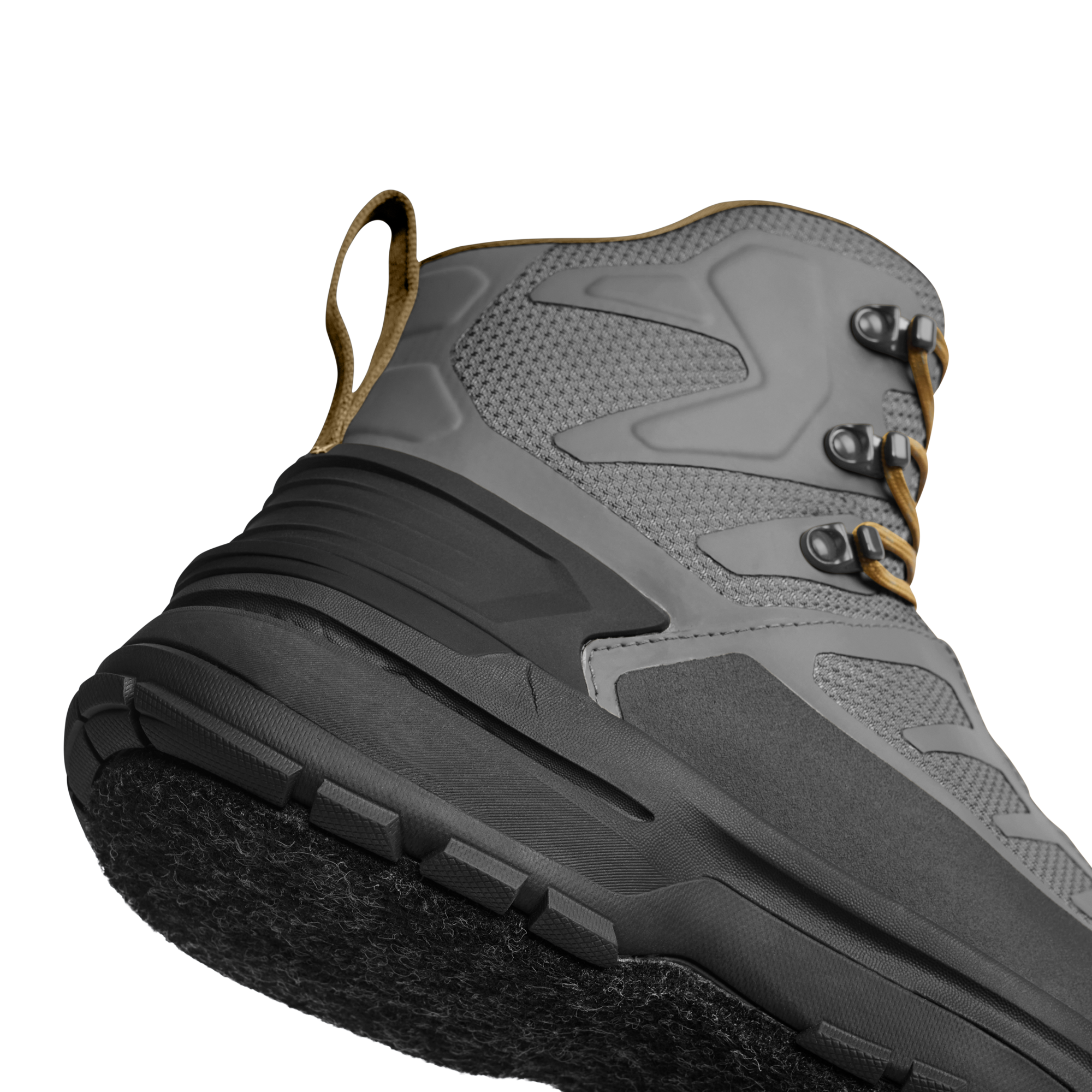 *FELT: The dense, 10mm felt platform is recessed directly into the outsole to eliminate traditional failure points and dramatically increase durability, while remaining stud-compatible when additional grip is required.