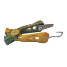Revised version with built in hook file - Exceptional performance at a great price. Super sharp Tungsten Carbide Blades are mounted on a lightweight 6061-T6 anodized aluminum frame. Clean cuts right through everything from 80lb braid and mono, 30lb Dacron and 20lb coated wire, right down to 7X tippet. Built in hook-eye cleaner/knot detangler and hook file. Attaches wherever you like via coated steel retention ring. Replacement blades, screws and hex key included. 2.25" length. SPECIFY: (A)Straight Cutting Face, (B)Off-Set Cutting Face. Available in Gold/Olive or All Black.