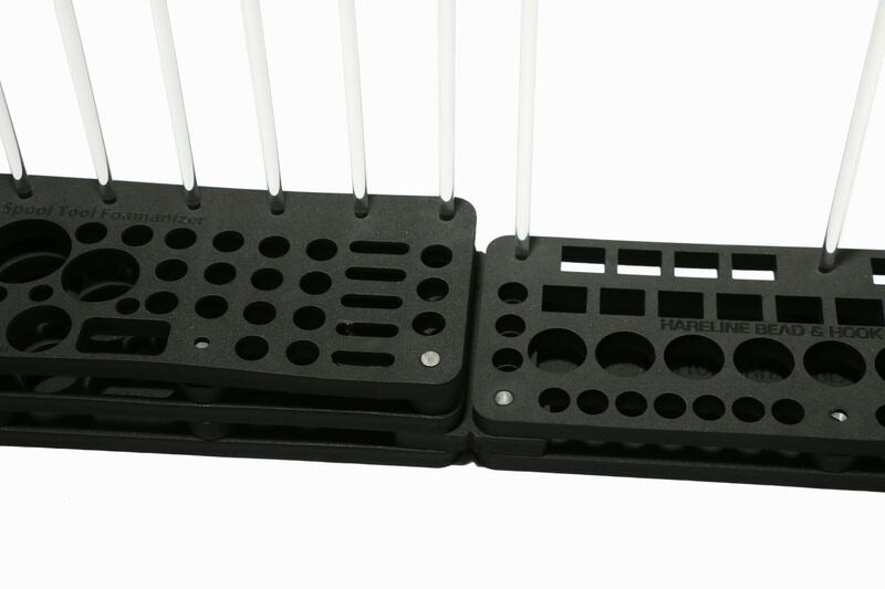 The Foamanizer system is designed to help you perfectly organize your fly-tying bench. Made from lightweight foam, it features several modules specifically created to hold and organize your fly-tying beads, hooks, tying thread, resins, and glues. It is available in multiple sizes and configurations to suit modest-sized benches and larger custom setups.