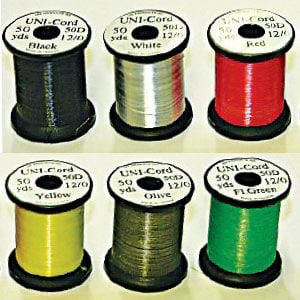 An awesome combination of small size and great strength. At 50-denier and a breaking-strength of four (4) pounds, it will handle the toughest jobs. Great for spinning deer hair on trout flies, holding together big foam flies, and when dubbed with the split-thread method, it creates almost indestructible bodies.