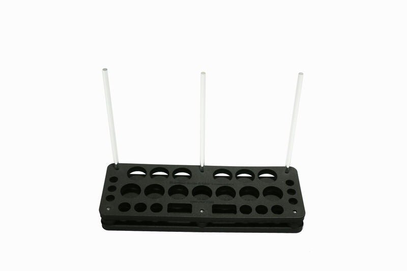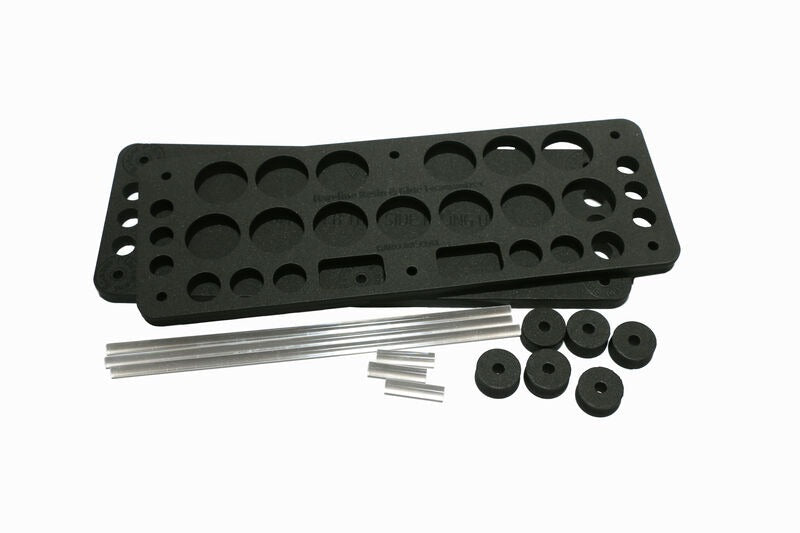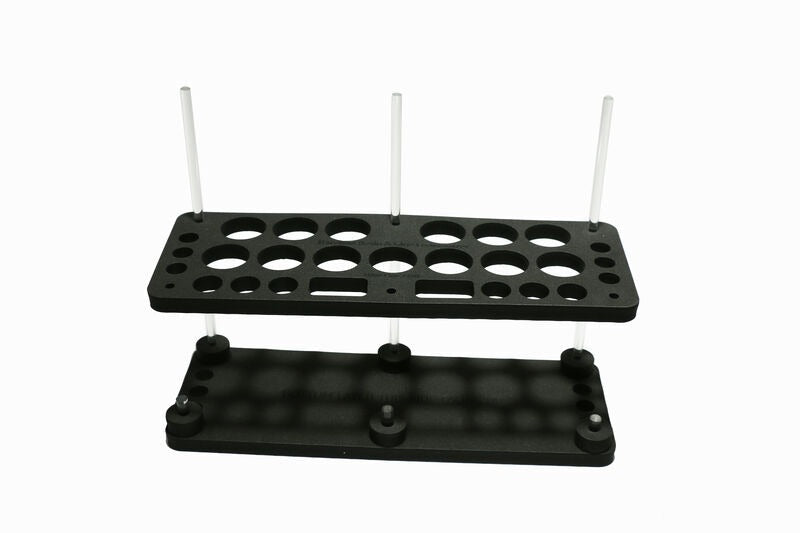 This includes 2 Foamanizer Sections, 6 Spacers, 3 Long and 3 Short Rods. Insert the rods into the marked holes on the bottom layer and slide them down to the top layer.