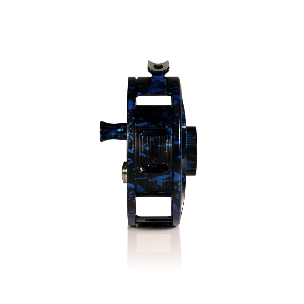 The Hatch Iconic Dark Matter is a limited-run visual statement built on one of the most trusted reel platforms in fly fishing. This special edition takes the proven Iconic design and elevates it with a deep black anodized base, layered with a chaotic blue splatter pattern that gives every reel a one-of-one feel. Bold chartreuse accents on the center cap and size marker punch through the darkness, creating a high-contrast look that’s unmistakably Iconic. It’s aggressive, modern, and purpose-built to stand apart on the water without sacrificing performance.
