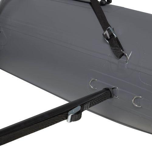 Ultra-light Slot Rail frame attaches to the boat with four NRS straps (included).
