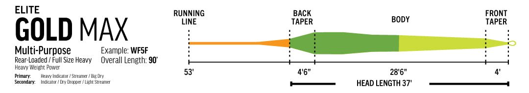 RIO ELITE GOLD MAX - Tri-Color is Blaze-Orange running line with Green/Mint head. WF4F thru WF9F. $129.99
