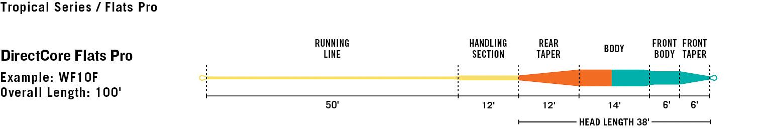 Featuring Rios DIRECT-CORE technology. The DO-EVERYTHING-BETTER LINE that actually does; the bones that sneak inside normal casting range, the last ditch long shot at a permit leaving the flat, big crabs and tarpon toads into 30-knot headwinds, you name it. New DirectCore provides the stiffness you need to fire into the wind, with significantly reduced memory. Lines lie straighter on the water for a more direct connection to fly and fish, providing powerful strip sets. DirectCore is 25% stronger than other mono cores of equal size, and stretches 30% less. The FLATS PRO is built with a front taper that loads easily in close, and the mid-length head and extended back taper provide stability for fast, accurate, long distance casts as well (aided by Rios AgentX and Extreme slickness technologies). These lines also come standard with Rios SurerFire triple-color distance marking technology to help take the guesswork out of putting the fly exactly where you want it. Rios Easy ID system means youll never forget what line weight it is. COLORS: (1)Sand running line with Orange/Aqua-Blue head, (2)Kelp running line with Sand/Gray head. SIZES: WF6F thru WF12F