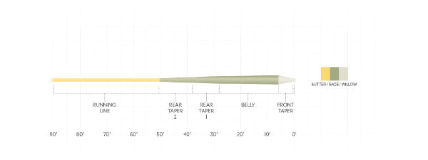 The Trout GP taper is one quarter heavy. Color is Butter/Sage/Willow.