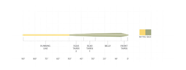 One-quarter line heavy. Mid length head for exceptional mending and accuracy at distance. This is a casters line meant to do-it-all when paired with today’s med-fast to fast action rods. Color is Butter/Sage/Willow.