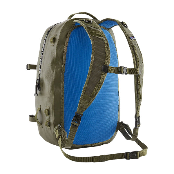 Ultra simple, minimalist, fully welded waterproof pack with adjustable harness and waist belt. Left- or right-handed net scabbard is integrated into the back panel for easy, out-of-the-way net stowage with either hand. Internal organizer pocket separates small items from main compartment contents and can be transferred to external lash points when quick access is critical. One set of integrated rod tube straps. 1770 cu. In.