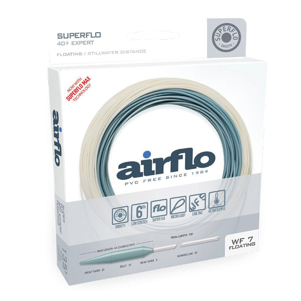 Combining our 'Superflo' technology with our best-selling 40+ Expert fly lines was a mouth water prospect. The ability to incorporate Superflo's ultra thin running line and super slick coating would enable 40+ to become an even longer casting fly line! Built upon our legendary low stretch power core, you'll have no trouble feeling takes and setting hooks at 40+ yards, and believe us, you're going to need it!