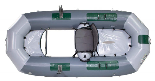 Designed with an open oarlock system, the Clearwater can accommodate longer, stronger oars for when you need extra power. The high-back seat rests on an inflatable thwart, giving the rower enhanced visibility and comfort, making it perfect for long days on the water and short expedition trips.