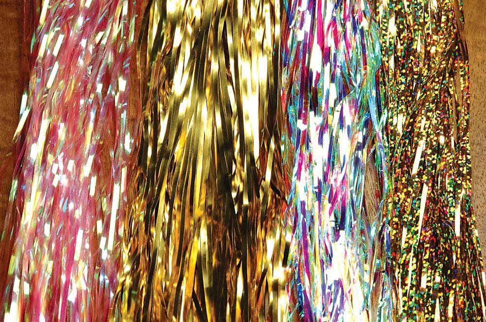 Saltwater Flashabou is a thicker saltwater version of Flashabou. Don’t let the name saltwater fool you though. It also works well on larger northern pike flies and muskie flies as well as a variety of large saltwater flies. Especially good on striper flies and snook flies. Try some on your bass flies too. Lots of flash!