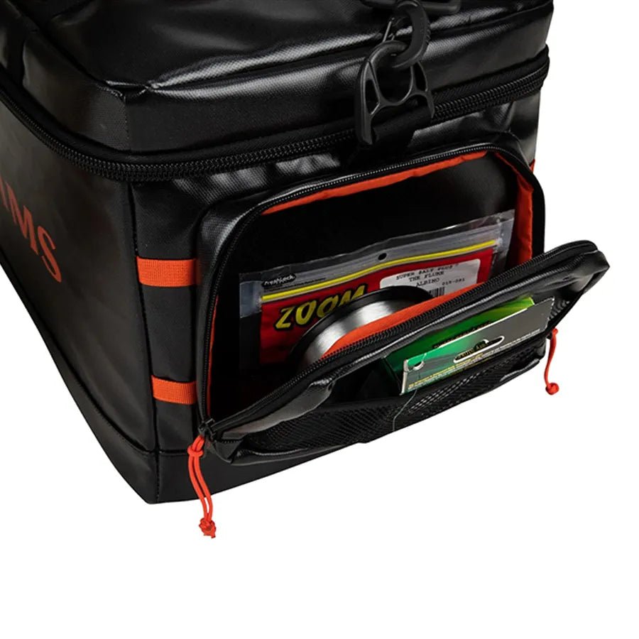 - Laser-cut lash ports and webbing loops offer attachment of tools, as well as other Simms packs and accessories